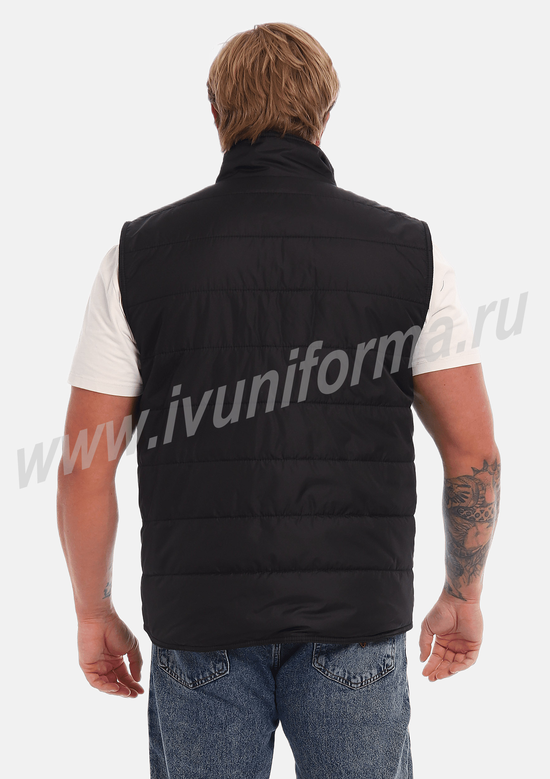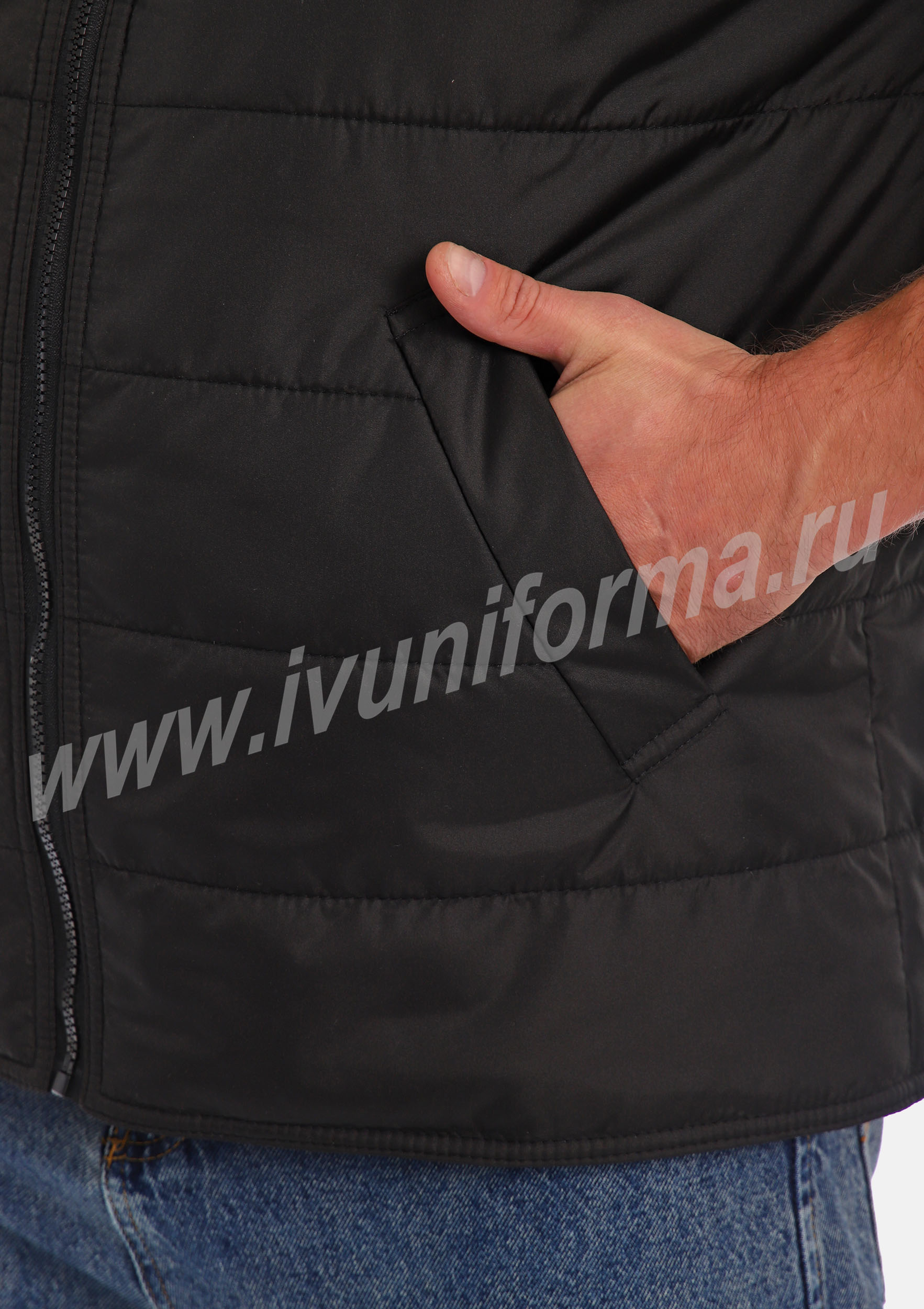 Жилет утепленный на молнии с двумя боковыми карманами в нижней части. Внутренняя часть жилета выполнена из ткани флис. В качестве утеплителя используется синтепон. Жилет является универсальным для использования как мужчинам, так и женщинам.